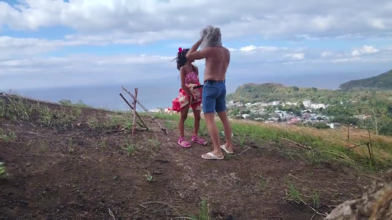 pretty brunette teen rides old guy's cock in open air