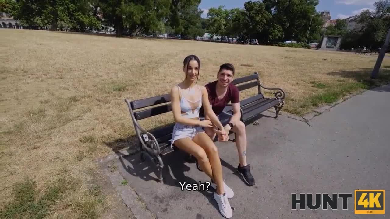 Brunette Cowgirl Rides Big Cock Hard in Street Casting with Shaved Pussy and Watching Action!