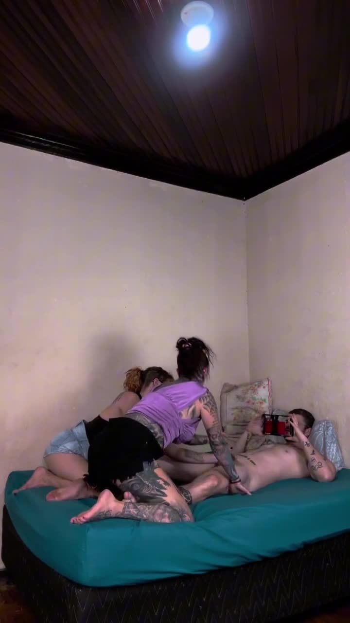 Real life harem with 4 girls sharing 1 lucky guy! Part 2 rocks 😜