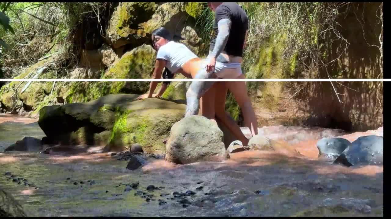 Amateur couple films river encounter
