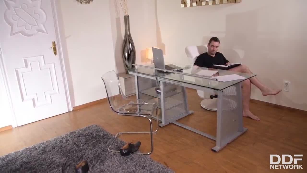 daddy breaks curly blonde in bondage, creampie on feet next
