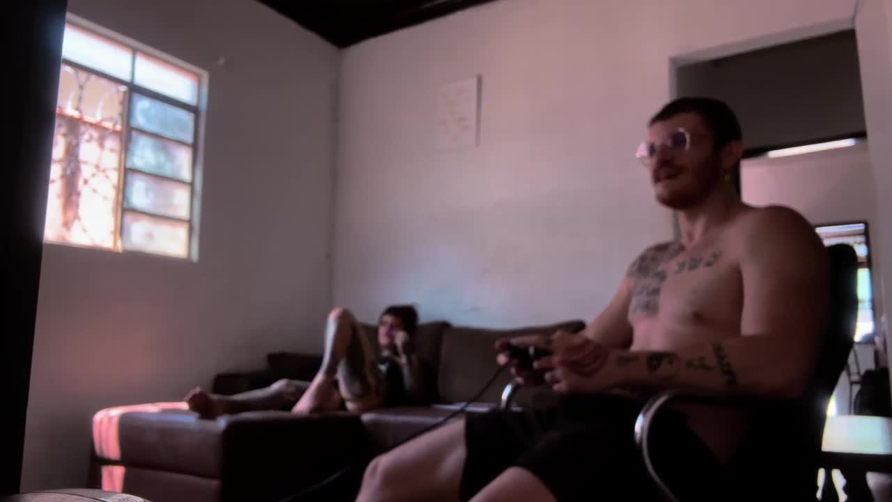 In this neutral tale, we see behind-the-scenes footage of sucking carmona while playing video game.