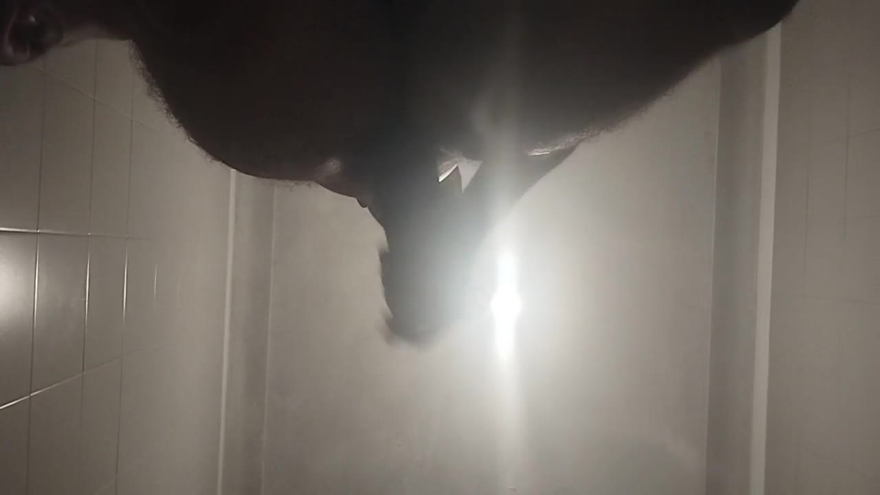 A solo shower session turns intense as he works his big black cock to a messy cumshot.