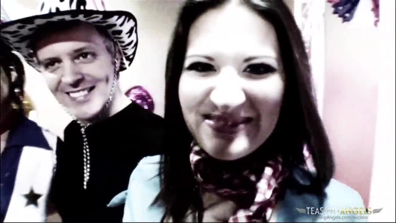 Stepsisters Demi and Evelin fiercely suck and ride boyfriend's fat rod