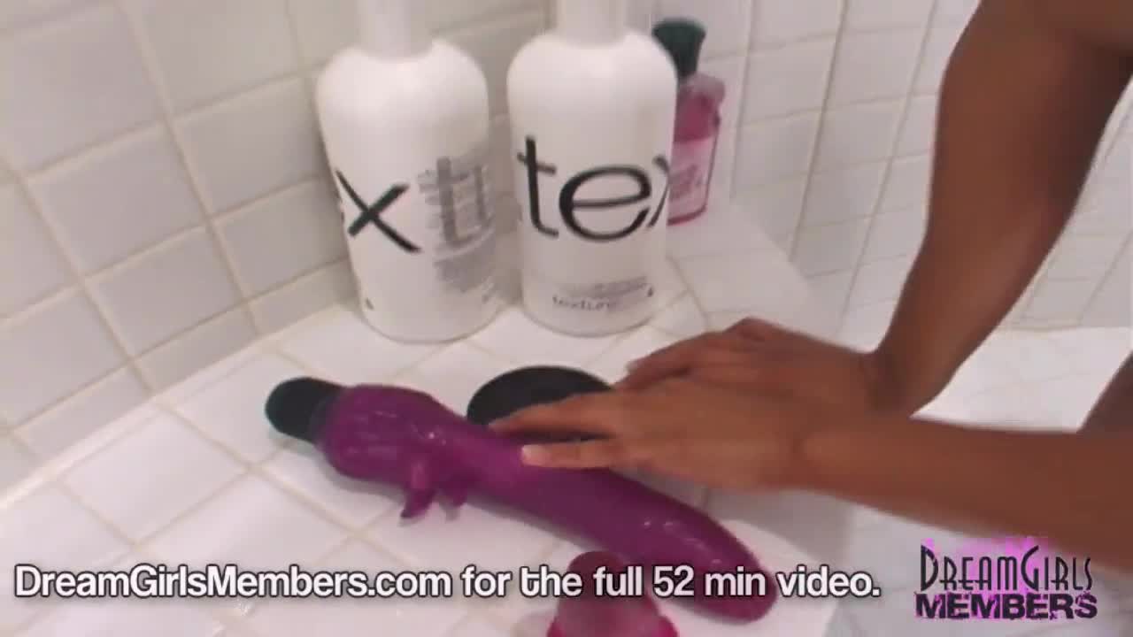 Cute Brunette Latina in Shower Rams Huge Dildo Deep into Shaved Ass and Wet Pussy.