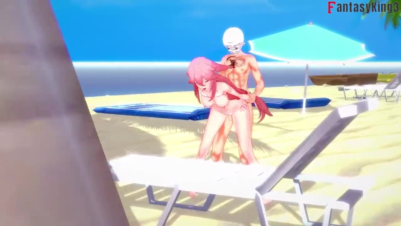 Yae Miko in bikini gets wild on beach in Genshin Impact POV fantasy!