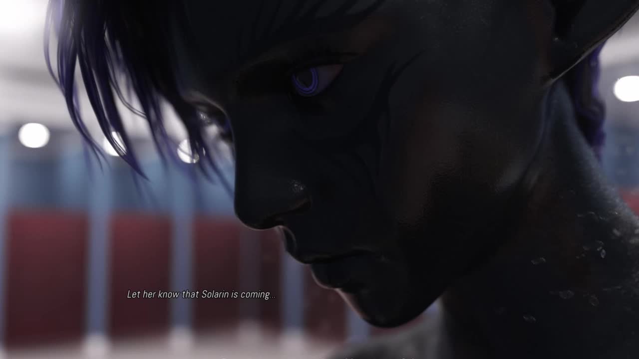 Dark alien babe fingers lesbian lover in steamy shower gaming scene.
